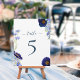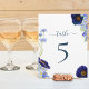 Torne fácil para os seus convidados de verão encontrar o lugar deles com estes cartões de número da mesa de flores silvestres elegantes de na moda. Com um belo roteiro de tipografia personalize a noiva e os nomes dos noivos e a data do casamento usando modelos fáceis de usar. Primavera de boho único e flores silvestres de verão, incluindo flores, papoilas, cosmos, esqueçam-me os nãos com folhagem delicada pintada pela artista Catherine Sweetman em azul de córnflor, azul esbranquiçado, azul marinho, roxo e verde. Ideal para o café da manhã do casamento, janto de ensaio ou dia do janto do casamento.