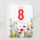 A parte inferior da tabela contém uma borda exuberante e realista de várias flores silvestres, incluindo papoilas vermelhas, flores roxas e amarelas, e lavanda, trazendo a beleza de um jardim florescente para cada mesa.