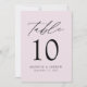 Trendy, cartões minimalistas de números das mesas de casamento com letras negras modernas com "Mesa" em um roteiro de caligrafia moderno. O design apresenta um fundo lavanda-roxo ou uma cor de sua escolha. O design repete atrás. Para solicitar os cartões de mesa: adicione seu nome, data do casamento e número da tabela. Adicione cada número ao carrinho individualmente e faça check-out quando terminar.