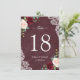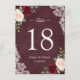 Cartão De Número De Mesa De Casamento Floral De Lugar Floral Burgundy Blush. (1) Personalize este modelo um por um (por exemplo, do número 1 a xx) e adicione cada placa numérica separadamente ao carrinho. (2) O tamanho padrão é 4,5" x 6,25", você pode alterá-lo para outros tamanhos (por exemplo, 3,5 x 5, 5 x 7 ...) (2) Para mais personalização, clique no link "personalizar mais" e use nossa ferramenta de design para modificar esse modelo. (3) Se precisar de ajuda ou itens correspondentes, entre em contato comigo.