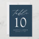 Trendy, cartões minimalistas de números das mesas de casamento com cartas brancas modernas com "Mesa" em um roteiro de caligrafia moderno. O design apresenta um fundo de marinho ou uma cor de sua escolha. O design repete atrás. Para solicitar os cartões de mesa do marinho: adicione seu nome, data do casamento e número da tabela. Adicione cada número ao carrinho individualmente e faça check-out quando terminar.