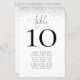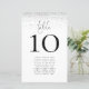 Número da Tabela de Casamento de Nomes de Script de Glitter do Orçamento Silver. Um preço orçamentário de placa PLANA de 5,5" x 8,5" em um estoque de placa SEMI GLOSS brilhante de 110 lb (semelhante à espessura de um cartão postal). Um design elegante com mesa em um script de estilo de escrita manual definido e seu número de tabela abaixo e nomes de convidados nessa mesa. Personalize facilmente o número e os nomes. Uma borda cintilante de falso prateado corre ao longo da borda superior. O mesmo design está do outro lado e ambos os lados serão atualizados simultaneamente quando você fizer suas alterações.