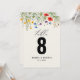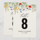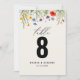 Este encantador número de mesa adiciona um toque de beleza natural às suas mesas de casamento. Apresentando uma delicada ilustração aquosa de um campo de flor silvestre, este sinal cria um senso de romance e elegância. A elegante letra de script e paleta de cores suaves complementam o design floral, fazer-o como uma escolha perfeita para os casamentos de primavera e verão.
