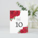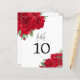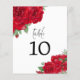 Número da Tabela de Casamento de Script do Rosa vermelha. Um tamanho de 4,5 x 5,6 pol de semirbrilho com peso de 110 lb, que é de espessura semelhante a um cartão postal, com UM por folha. Uma abundância de rosas vermelhas ricas decora os cantos superior esquerdo e inferior direito e o número da sua mesa está no centro. A Mesa da palavra de cabeçalho está em um conjunto elegante de tipografia em preto, e o número da tabela pode ser facilmente personalizado.