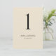 Ajude seus hóspedes a encontrar a mesa com este elegante número moderno de mesa de creme bege. Cartão de lado duplo. Espaço livre ao redor, dando-lhe a liberdade de exibir com mesa ou quadro. Fundo de creme bege atrativo e texto preto. Várias opções de cores. Cartões e menus correspondentes disponíveis. Ter todos os números de tabela na mesma cor ou cores misturadas de acordo com o tema de cor do evento. Parte de nossa coleção "Sinais de eventos e produtos de tons terrestres" com uma variedade de produtos de coordenação disponíveis.