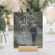 Bem-vindos convidados para a sua recepção de casamento com cartões de números de tabela de fotos personalizadas modernas e QR Code. Imagens e textos são simples de personalizar, e podem ser diferentes ou iguais em frente e atrás. Se preferido, mude "capturar o amor" para "fundo da lua de mel", "obrigados especiais", "menu", "nossa história de amor" ou outro texto de sua escolha. (DICA DE IMAGEM: Uma maneira fácil de posicionar uma foto exatamente como você deseja é recortá-la antes de carregá-la no site do Zazzle.) Ao digitalizar o código QR com seus telefones, os convidados são enviados diretamente para um site de casamento ou outro local online com qualquer informação importante/divertida, como uma mensagem de vídeo, um aplicativo de pagamento digital ou uma página de mídia social. O design preto e branco de dois lados apresenta caligrafia manuscrita moderna, tipografia serif clássica, 2 códigos QR personalizados e suas fotos. Essas elegantes e únicas cartas de números de tabela fazem na moda a uma celebração especial. A foto de exemplo na frente é de Tim Stagge em Unsplash (@tim_stagge).