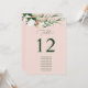 Cartões bonitos de números de mesa são a decoração perfeita para manter seu casamento, festa de noivado, janto de ensaio ou evento organizado. Esses números clássicos de tabela são personalizados com os nomes de seus convidados para fazer uma brisa. Os detalhes do design têm tons pastéis macios e florais aquosos modernos verdes em tons de pêssego, branco, marfim creme, sábio e verde mais brilhante. Esses cartões de mesa personalizados se coordenam com nossa coleção floral de cheio botânica de papel para papelaria e artigos de papel para eventos.