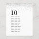 Um tamanho de 4,5 x 5,6 pol de semirbrilho com peso de 110 lb, que é de espessura semelhante a um cartão postal, com UM por folha. Número da Tabela de Nomes de Convidados da Glitter Silver. Simples estilo contemporâneo com o número da tabela maior em na moda lowercase e seus nomes de hóspedes para a mesa abaixo e muito espaço branco com uma borda de cintilação falsa prateada no topo. Personalize facilmente o texto para seus próprios detalhes. O mesmo design está atrás