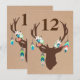 O cartão da mesa de recepção de casamento personalizada de temas tribais russos feito em um olhar de papel de artesanato. Gráficos de uma silhueta marrom na cabeça, no meio do cartão, são decorados com penas e flores. Personalize o número marrom de CADA mesa na sua recepção. Combina a nossa madeira rustica com o casamento da Deer Head.