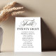 Este design apresenta um cartão de número da mesa de casamento com um elegante e simples roteiro de caligrafia, em preto e branco simples, um design de tipografia minimalista, perfeito para decoração de recepção clássica.