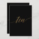 Este elegante número de mesa de ouro e mesa dez preta é perfeito para um casamento simples. A design neutra apresenta uma carta minimalista decorada com a tipografia falsa de ouro romântica e caprichosa. A placa impressão na frente e atrás (lado duplo). Os outros números de tabela na coleção são vendidos separadamente. Nota: Este design não apresenta folha de ouro real. É um gráfico de alta qualidade feito para se parecer com folhas de ouro.