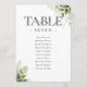 Esses elegantes números de mesas de casamento com tipografia floral verde podem ser personalizados com o plano de assentos de seus convidados em letra chic. As placas são impressas na parte frontal e traseira (lado duplo). Projetado por Thisnotme©