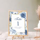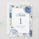 Número da Tabela Floral de Casamento Azul e Dourad