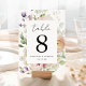 Números elegantes da mesa de casamento floral que incluem flores a aquarela e folhagem em tons de pêssego claro, marfim, rosa-pincel, roxo, amarelo e verde. Os números florais incríveis são perfeitos para casamentos de primavera e jardim de verão. Para solicitar os cartões de mesa x 7" de 5": adicione seu nome, data do casamento e número da tabela. Adicione cada número ao carrinho individualmente e faça check-out quando terminar. Não solicitar por quantidade ou você terá várias placas com o mesmo número. Projetado para coordenar com a nossa coleção de casamento Delicate Primavera Floral.