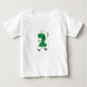 Um grande número verde 2 com olhos, braços e pernas em T-shirts com segundo aniversário Número, canecas, cartões, adesivos, guardas e outros segundos aniversários.