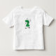 Um grande número verde 2 com olhos, braços e pernas em T-shirts com segundo aniversário Número, canecas, cartões, adesivos, guardas e outros segundos aniversários.