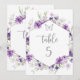 Número de mesa de borboleta prateada floral roxa