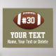 Este poster de futebol personalizado apresenta um futebol marrom que pode ser personalizado com um número de camisa. Adiciona também duas linhas do seu próprio texto - nome da equipe, nome do jogador, etc. Faz um poster excelente para o quarto de um menino. Altere facilmente a cor de fundo - basta clicar em Personalizar e, em seguida, no conta-gotas pequeno. Veja os outros itens temáticos do futebol clicando no logotipo da Colorfulgalshop abaixo e depois em Esporte/Hobbies > Futebol. Obrigados para passar!