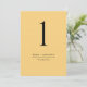 Ajude seus convidados a encontrar sua mesa com este elegante número de mesa amarelo moderno. Cartão de lado duplo. Espaço livre ao redor, dando-lhe a liberdade de exibir com mesa ou quadro. Fundo amarelo atrativo e texto preto. Várias opções de cores. Cartões e menus correspondentes disponíveis. Ter todos os números de tabela na mesma cor ou cores misturadas de acordo com o tema de cor do evento. Parte de nossa coleção "Elegant Yellow Event Sign and Products" (Sinais e Produtos Amarelos Elegantes) com uma variedade de produtos de coordenação disponíveis.