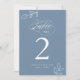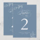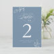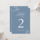 Cartão de Número De Mesa Azul Dusty De Folha Botânica Minimalista De Caligrafia Elegante.