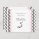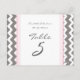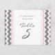 Pasta clara elegante e moderna, cor-de-rosa-claro, cinza de carvão negro e cartões de número de mesas brancas com padrão de riscas retrorreflectoras divertidas. Personalize estes cartões para criar cartões de número de tabela personalizados para cada mesa no seu casamento. Adicione seus nomes e data de casamento. Padrão disponível em uma grande variedade de produtos de casamento correspondentes.