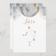 Aproveite um tema da constelação celeste com nossos sinais de mesa da constelação! Coleção com 18 belas constelações para escolher. Cada carta de mesa com uma constelação, neste caso, a formação estelar "Libra" em folha de ouro falso e delicado céu aquarela com estrelas e cena lua numa bela mistura de prata, cinza, branco-ouro e poucas tonalidades azuis. Estrelas da Duna, constelação de Libra e detalhes sobre lua em folha de ouro falso. Guie seus convidados para a mesa com nossos placas de assentos de mesa correspondentes ou nossos placas de placas de placa de coordenação. Parte da nossa coleção "White, Dourado e Silver Celestial Stars and Moon" com uma variedade de produtos de coordenação disponíveis. Visite a coleção inteira em: https://www.zazzle.com/collections/gold_white_and_silver_celestial_stars_and_moon-119446192561160871