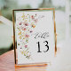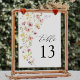 Números De Mesa Simples De Casamento De Bóho Primavera Colorida De Flor Selvagem Elegante. Buquê floral estilo boêmio com elegantes e simples flores brancas e botânicos verdes, de forma pastel, em cor d'água impressa à mão. Modelo editável para primavera, verão, outono e casamentos no inverno.