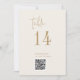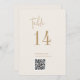 Este moderno número de tabela de códigos QR de ouro-quic é perfeito para um casamento simples. O design boho neutro apresenta uma tipografia rústica única e na moda boêmica em uma cor mínima de ouro e creme de marfim. A placa impressão na frente e atrás (lado duplo). Use o código do bar para vincular ao menu ou a um site ou mídia social onde seus convidados possam compartilhar fotos. Adicione cada número de tabela que você precisa ao seu carrinho individualmente.
