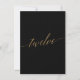 Este elegante número de mesa de ouro e mesa 12 preta é perfeito para um casamento simples. A design neutra apresenta uma carta minimalista decorada com a tipografia falsa de ouro romântica e caprichosa. A placa impressão na frente e atrás (lado duplo). Os outros números de tabela na coleção são vendidos separadamente. Nota: Este design não apresenta folha de ouro real. É um gráfico de alta qualidade feito para se parecer com folhas de ouro.