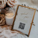 Este elegante número da mesa de casamento de 5 x 7" com o código QR da foto é perfeito para um casamento simples. A design neutra apresenta uma carta minimalista decorada com a tipografia falsa de ouro romântica e caprichosa. Personalize cada número de tabela necessário e adicione cada um ao carrinho individualmente. Nota: Este design não apresenta folha de ouro real. É um gráfico de alta qualidade feito para se parecer com folhas de ouro.