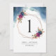 Ajude seus convidados a encontrar sua mesa com este elegante número de mesa celestial. Cartões duplos. Espaço livre na parte inferior dando-lhe a liberdade de usar o suporte ou quadro da mesa. Cena estelar celestial de cor aquática atrativa no topo e no quadro do hexágono central, com detalhes florais mostrando o número da mesa, tudo numa bela mistura de tons azuis, turquesa, fúcsia, roxo e dourados. NOTA: coloque e faça um pedido individual com cada número de tabela de que você precisa (ou seja, para um evento com três mesas, você precisaria colocar e fazer o pedido com a tabela número um, adicionar ao carrinho de compro, e depois voltar a adicionar o número dois para a mesa dois, adicionar ao carrinho de compro, voltar e adicionar o número 3 para a tabela número três, adicionar ao carrinho de compro e agora que a ordem estiver completa). Parte da nossa "Coleção Celestial do Jardim Místico" com uma variedade de produtos de coordenação disponíveis.