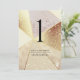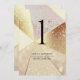 Ajude seus hóspedes a encontrar sua mesa com este elegante número de mesa moderna. Cartões duplos. Espaço livre ao redor, dando-lhe a liberdade de usar o suporte ou quadro da mesa. Folha geométrica atrativa e fundo padrão de brilho numa mistura de tons de champanhe, ouro, rosa e folha de rosa poeirento. Parte da nossa coleção "Champagne, Dourada e Rosa Dourada Quinceañera Floral" com uma variedade de produtos coordenadores disponíveis.