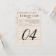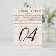 O sonho de um amante de livros para os detalhes do dia do casamento, este número de mesa de cartão de biblioteca vintage reimagina o clássico cartão de checkout com campos encantadores "Autor", "Título" e "Nome do Mutuante" preenchidos com os detalhes do seu casamento. Um número de mesa ousado e superdimensionado ancoram a parte inferior do design, tornando fácil para os convidados encontrarem seus lugares. Perfeito para recepções com tema literário. Totalmente personalizável para combinar com sua celebração. Por favor, note que cada número de mesa deve ser personalizado individualmente e adicionado ao carrinho um de cada vez.