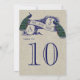 Cartão de Número de Mesa de Casamento Rústico com Pavão em Lona de Sarja. Este lindo design de cartão de número de mesa de casamento é perfeito para um Casamento Vintage com a capacidade de personalizar com suas iniciais monogramadas. Seu design único com Dois Belos Pavões em Estandarte Vintage e texto "Sr. e Sra." em uma fonte azul escura, tudo em um efeito de foto de linho impresso em fundo, cria um cartão de número de mesa de casamento único e elegante. Elke Clarke© Por favor, encomende um cartão de mesa com o primeiro número nele. Em seguida, altere o número no menu de edição e adicione o próximo cartão de número de mesa ao seu carrinho até ter um cartão único para cada número de mesa no seu carrinho. Precisa de ajuda ou gostaria de uma combinação de cores diferente, por favor, entre em contato com luxuryweddinginvitations