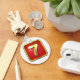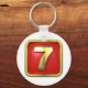 Este design é um ouro número sete. O número sete está em ouro sobre fundo vermelho. Este design dourado número sete parece excelente neste Chaveiro