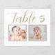 Cartões de números de mesas de casamento elegantes e exclusivos apresentam fotos de infância da noiva e do noivo em uma idade que corresponde ao número da tabela. Para personalizar: digite o número da tabela, clique em "alterar" pelas fotos padrão para carregar suas próprias fotos digitais ou digitalizadas e adicione esse cartão de número de tabela individual ao seu carrinho de compro. Repita para todos os números de tabela necessários.