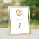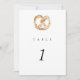 Cartões de números de mesas de casamento reproduzíveis e quentes, com uma pintura aquosa de um pretzel macio. O emparelhamento da aquarela pareada com a tipografia quic faz uma combinação maravilhosamente divertida.