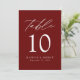 Trendy, cartões minimalistas de números das mesas de casamento com cartas brancas modernas com "Mesa" em um roteiro de caligrafia moderno. O design apresenta um fundo burguês ou uma cor de sua escolha. O design repete atrás. Para pedir os cartões de mesa: adicione seu nome, data do casamento e número da mesa. Adicione cada número ao carrinho individualmente e faça check-out quando terminar.