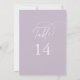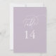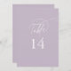 Estes elegantes números de mesas de casamento roxas 5x7" são perfeitos para um casamento simples. A design moderna minimalista apresenta a lavanda púrpura e romântica do pastel eterno com estilo de conto de fadas boêmico, perfeito para um casamento de primavera ou jardim de verão. A tabela números impressão na frente e atrás (frente e verso). Personalize e adicione cada número de tabela de que você precisa ao seu carrinho individualmente.