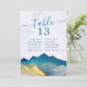 Números das Tabelas de Casamento Elegante Moderno Vintage Cartões Modelo - Verde Azul e Folha Ouro Faux Montanhas Watercolor Paisagem Paisagem. Estas Designs Podem Ser Personalizadas Para A Sua Ocasião Especial E Seriam Perfeitas Para O Seu Casamento, Chá de panela, Festa de noivado, Festa de aniversário E Muitas Outras Ocasiões Especiais.