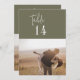 Estes números modernos da mesa de fotos verde-quiteira de 5 x 7" são perfeitos para um casamento simples. A design boho de madeira apresenta tipografia rústica única e na moda boêmica numa cor verde mínima de floresta florestal. A placa impressão na frente e atrás (lado duplo). Personalize cada placa com uma foto de tema de noivado ou viagem diferente. Adicione cada número de tabela que você precisa ao seu carrinho individualmente.
