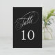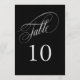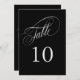 Um cartão de número de tabela elegante em preto com texto prateado com belo texto de script de caligrafia. Este design do tamanho de 5 polegadas por 7 polegadas é uma escolha maravilhosa para casamentos, banquetes, jantas, almoços e festas que usam preto e prata no esquema de cores. Para criar números de tabela para cada mesa, personalize uma placa de solteiro para a Mesa 1 e adicione ao carrinho, depois personalize uma placa de mesa para a Mesa 2 e adicione ao carrinho, e assim por diante até que você tenha uma placa para cada mesa.