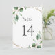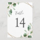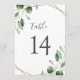Projetada para coordenar com a nossa coleção de casamento Moody Greenery, esta placa personalizável de números de tabela apresenta folhas de cor aquosa verde de eucalipto acentuadas com um quadro geométrico dourado e emparelhadas com um script de na moda e fonte serif de classe em cinzas. Para fazer alterações avançadas, vá para a opção "Clique para personalizar mais" em Personalizar este modelo.