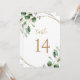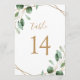 Projetada para coordenar com a nossa coleção de casamento Moody Greenery, esta placa personalizável de números de tabela apresenta folhas de cor aquosa verde de eucalipto acentuadas com uma estrutura geométrica dourada e emparelhadas com um script de na moda e fonte de serifa clássica em ouro. Para fazer alterações avançadas, vá para a opção "Clique para personalizar mais" em Personalizar este modelo.