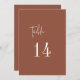 Estes números de tabela modernos de terracotta 5x7" são perfeitos para um casamento simples. O design do boho do deserto apresenta uma tipografia rústica única e na moda boêmica em cor de ferrugem laranja queimada à terra. A placa impressão na frente e atrás (lado duplo). Adicione cada número de tabela que você precisa ao seu carrinho individualmente.