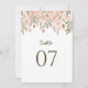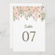 Adicione um toque de elegância às suas mesas de recepção com estes números de mesas de casamento florais cor-de-rosa pincelada. Apresentando um arranjo encantador de flores de aquarela embaçadas e um verde delicado, este design complementa sem interrupção casamentos românticos, rústicos ou jardineiros. O layout lindamente minimalista garante fácil visibilidade e, ao mesmo tempo, melhora sua decoração de mesa. Totalmente personalizável, esses números de mesas são a maneira perfeita de guiar seus convidados enquanto mantém uma estética coesa e sofisticada para o dia do seu casamento.