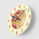 Um sol dourado e laranja se põe e o vento sopra nuvens vermelhas e rosa através do céu. Relógio com um design personalizável dourado, laranja, vermelho, rosa e branco para você personalizar com seu próprio texto, imagens e ideias. Outras opções de estilo disponíveis. Imagem criada de um lápis de cor original e desenho de tinta metálica de Jess Perry.