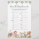 Nursery rima o nome do chá de fraldas do tema que o cartão de caça para bebês animais apresenta uma ilustração de rimas de berçário de aquarelas e verde-aquarela eucalyptus garland e uma elegante fonte de estilo manuscrito.