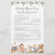 Nursery rima o cartão de jogo de teste de rima de berçário de chá de fraldas tematizado apresenta uma ilustração de rimas de berçário de aquarela e verde-aquarela eucalyptus garland e uma elegante fonte de estilo manuscrito.
