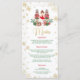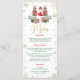Celebrate in style with this Winter Onederland Slim Menu Card, featuring a festive Nutcracker Christmas design with a ballerina in a red dress and elegant red, green, and gold accents.